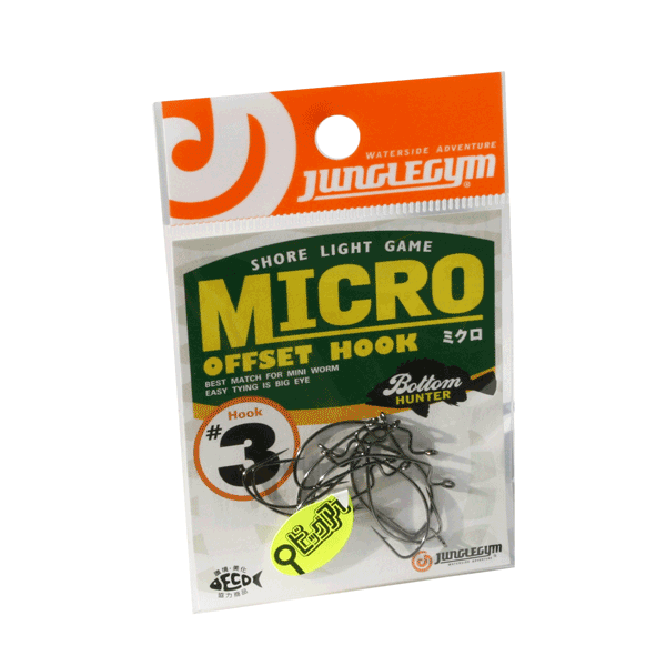 The Micro Offset Hook is a weedless pattern designed to be used Texas style in conjunction with soft plastic lures such as paddletails, worms and stick baits. Being “micro” this offset hook is thin wired with an aggressive point. The hook has an oversized eye for easy rigging which also allows it to be fished in conjunction with the JungleGym Beans Sinkers. This is the ideal pattern for LRF in snaggy, weedy ground when looking to match hook size to small and medium sized soft lures.