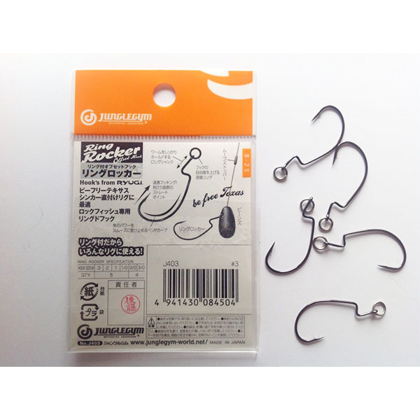 The Ring Rocker hook is an LRF style ringed hook that offers added movement through the use of the a ring that is spliced into the hooks eye. This weedless, offset hook is designed for fishing in conjunction with the Junglegym Beans sinker to produce a rig that the Japanese have coined the “Be Free Texas Rig” in which the inline cone shaped sinker slides up and down the trace and onto the ring of the hook, this is then locked into place at a set distance by the angler by use a rubber “Move Stopper” A very crafty technique that is already proving itself to be somewhat of a fish slayer in UK waters. This range runs from size #3 to #3/0 so is suitable for all small LRF species right up to the largest specimens.