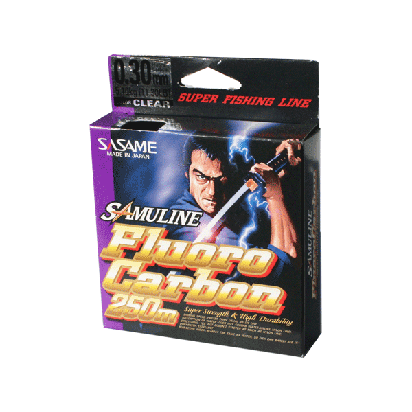 Superb strength and high durability make Sasame Fluorocarbon line, one of the best qualities on the market today. It has faster sinking speed than normal lines, does not stretch as much as normal lines, excellent durability. The Reflective index is almost the same as water so means it is almost invisible. Superb for leaders and snoods, you will be impressed by its quality. The quality for price of Samuline Fluorocarbon represents superb value for money in 250m spools. The diameters and line strength of Sasame Fluorocarbon lines area true sizes and weights as tested.