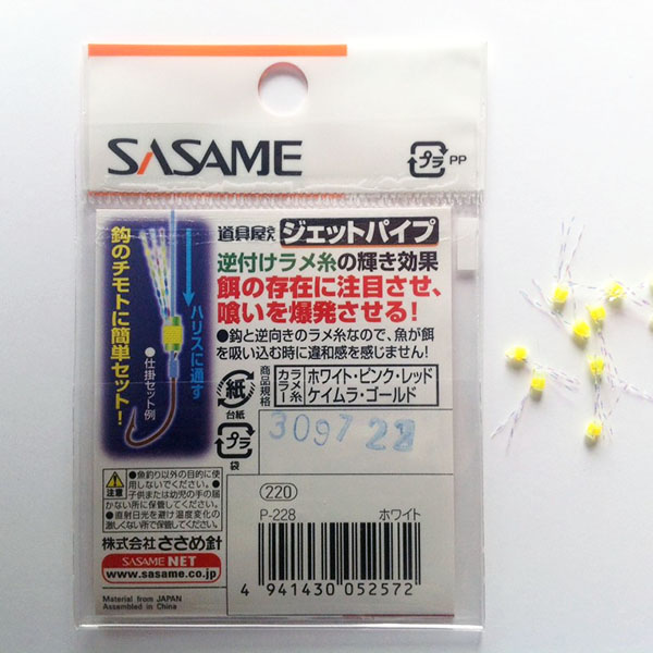 The P-228 Hook Pipe attractors are mini feathered tubes designed to be attached just above the shank of the hook. The aim being to offer added glitter attraction to the bait or lure it is designed for use with small hooks in a Sabiki style and presents itself well for species hunting. Sold in 3 colours Gold, White and Pink (packs of 10)